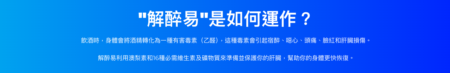 幫助清除乙醛—引起宿醉症狀的主要毒素